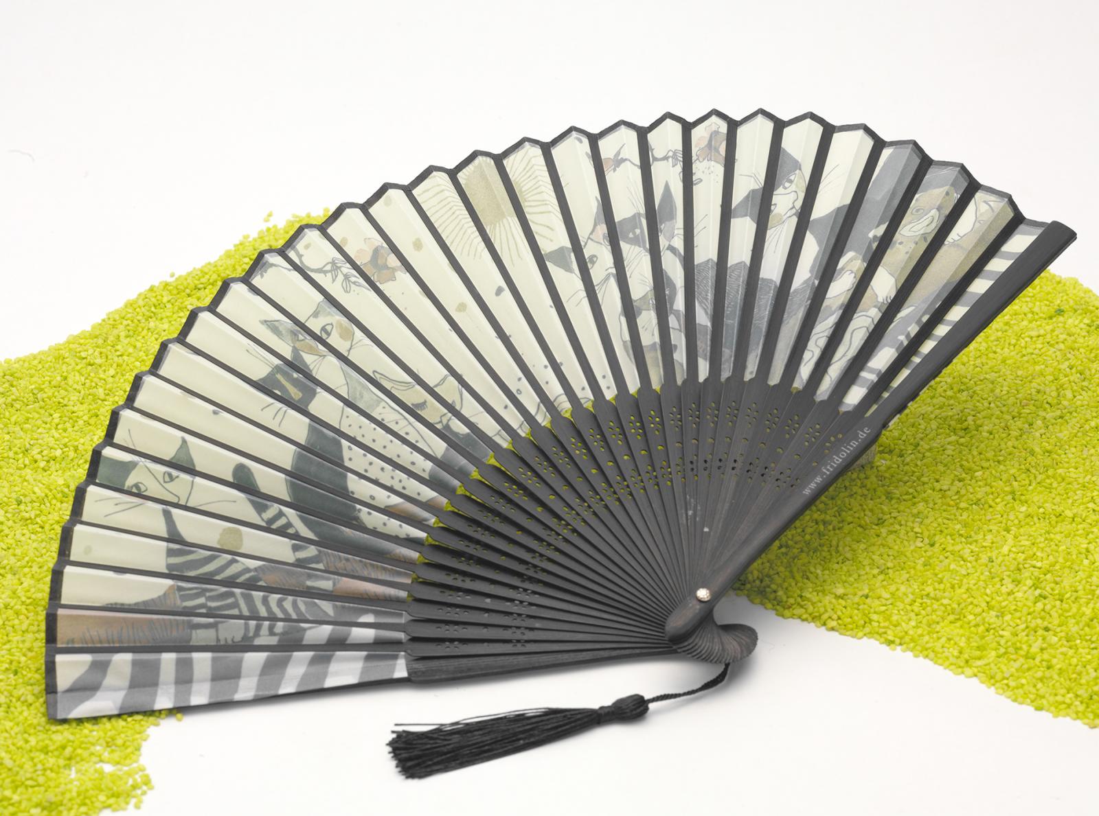 Fächer aus Stoff und Bambus Rosina Wachtmeister Cats Sepia