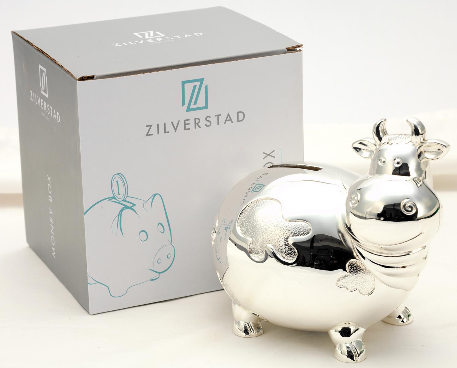 Spardose Kuh versilbert 14 x 10 x 12,5 cm