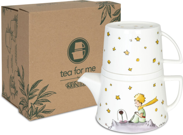 Die Der kleine Prinz Tasse zeigt den kleinen Prinzen aus der bekannten Kindergeschichte mit seiner Rose, die er unbedingt nach seinen Abenteuern wieder sehen möchte.