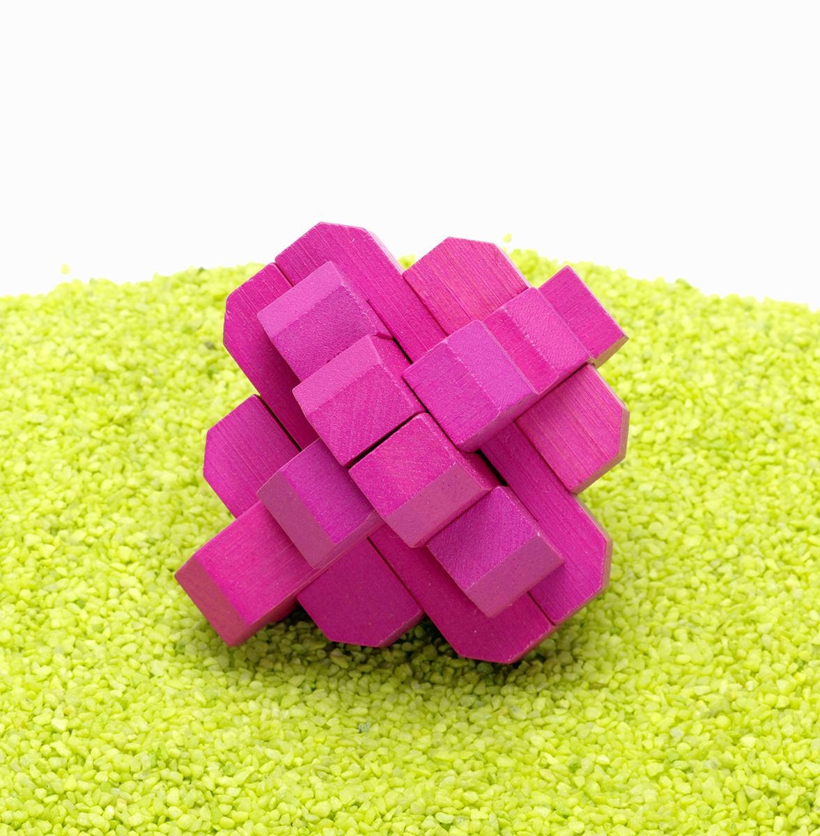 3D IQ Test Bambus Puzzle Runder Knoten magenta 9 x 8,5 x 9 cm