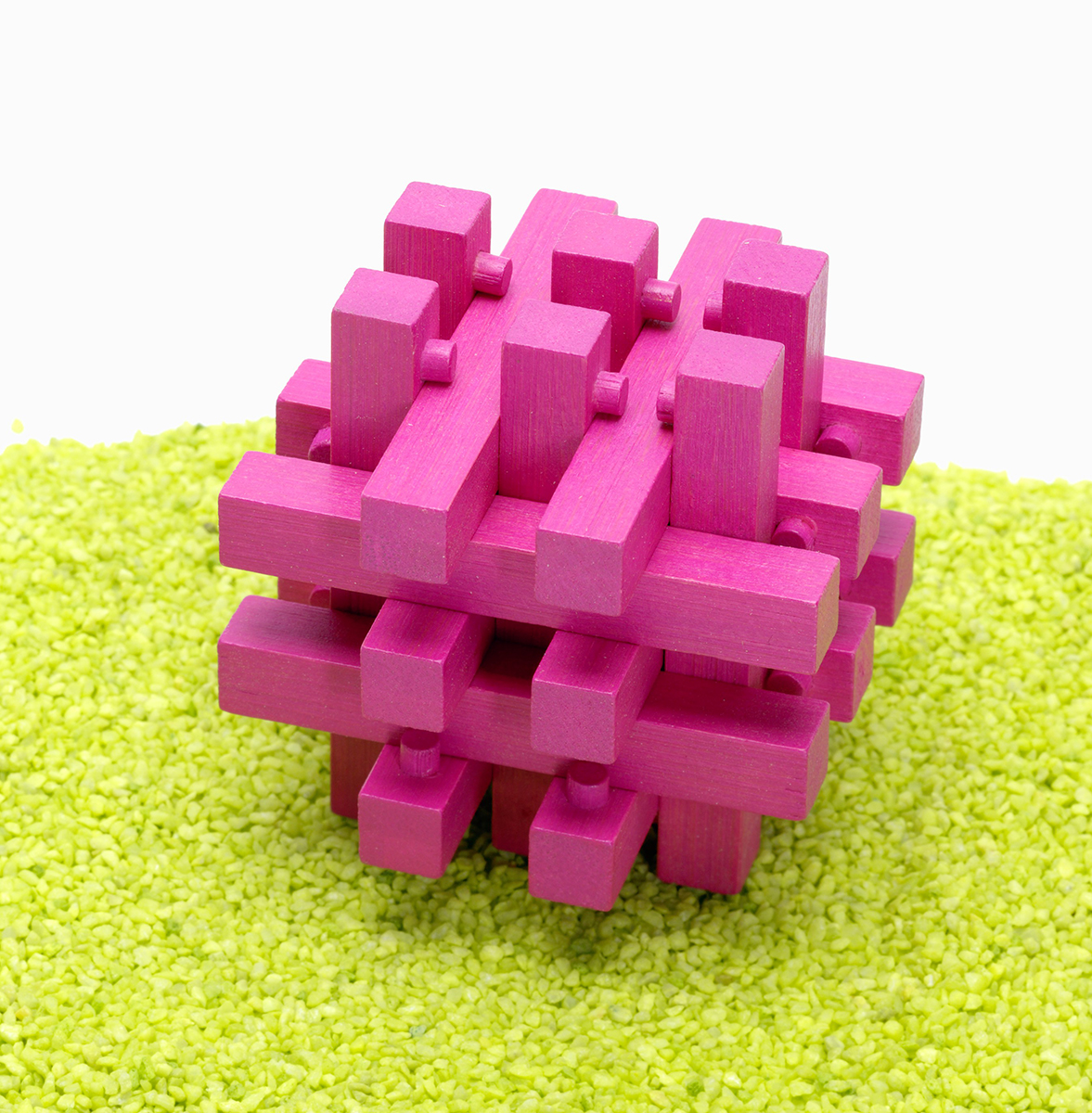 3D IQ Test Bambus Puzzle Verschlossen magenta 9 x 8,5 x 9 cm